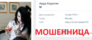 Страница «В контакте» этой мерзкой шарлатанки астролога Аиды Каратян — vk.com/aida_karatyan, а ее эту шарлатанскую группу vk.com/aidaa1973, эта аферистка называет якобы сайтом, то есть даже не знает что такое на самом деле сайт.