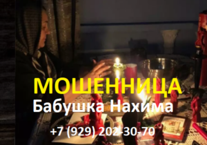 Бабушка Нахима (babushka-nahima.ru, +7 (929) 202-30-70) — шарлатанка, цыганка мошенница, которая на самом деле никакая ни бабка, а плохо говорящая по-русски мразь средних лет.