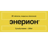 Сальбутиамин по своему химическому составу близок к тиамину, но отличается от него наличием еще одной дисульфидной связи, липофильного эфира и открытого тиазольного кольца. Эти изменения в химической структуре привели к появлению дополнительных свойств: сальбутамин растворим в жирах, что обеспечивает ему возможность проникновения через гематоэнцефалический барьер. Препарат обладает сродством к нервной ткани, что приводит к его накоплению в клетках ретикулярной формации, гиппокампе, волокнах Пуркинье, в клубочках зернистого слоя мозжечка и в зубчатой извилине. Экспериментальным путем доказана способность препарата улучшать настроение и когнитивные функции: внимание, запоминание, также улучшать переносимость гипоксии корой головного мозга. Препарат быстро и полностью абсорбируетсятся из ЖКТ, максимум концентрации препарата достигается через 1-2 часа после перорального приема. Энерион выводится преимущественно с мочой, период полувыведения 4.5-5 часов. Показания к применению: — лечение симптомов астении. Способ применения: Взрослым 2-3 таблетки в сутки, разделив суточную дозу на 2 приема. Таблетки принимаются целиком, с достаточным количеством жидкости, во время завтрака и обеда, избегая вечернего приема. Курс лечения зависит от состояния больного и определяется индивидуально, минимальная его длительность 20 дней. Побочные действия: Возможны симптомы возбуждения, тремор, головная боль, слабость, диспепсические симптомы. Аллергические реакции чаще связаны с наличием в препарате красителя желтого цвета(Sunset yellow). Противопоказания: Непереносимость любого из компонентов препарата. Детский возраст. Врожденная галактоземия, синдром мальабсорбции галактозы и глюкозы, так как в состав препарата входит глюкоза. Период беременности и кормления грудью. Беременность: Энерион при беременности не применяется, так как нет убедительных доказательств его безопасности. Взаимодействие с другими лекарственными средствами: Не выявлено клинически значимого взаимодействия с каким-либо препаратом. Передозировка: Симптомы передозировки (возбуждение, ажитация, эйфория, тремор рук) проходят самостоятельно, лечение не требуется. Форма выпуска: Таблетки, покрытые оболочкой 200 мг №10. Таблетки, покрытые оболочкой 200 мг №20. Условия хранения: Хранить в месте, недоступном для детей, при температуре не более 25 градусов Цельсия. Состав: Активное вещество: сальбутиамин 200 мг. Дополнительно: Соблюдать осторожность при назначении пациентам, деятельность которых требует быстрой реакции.