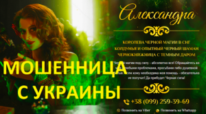 Помимо обмана людей от клички шарлатанка колдунья Александра (gadaniepage.ru), эта украинская проститутка мошенница также обманывает людей под многими ее другими кличками: