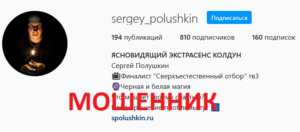 У этого ведь мерзкого шарлатана мага Сергея Полушкина (spolushkin.ru) есть еще страницы этого мошенника в соцсетях: