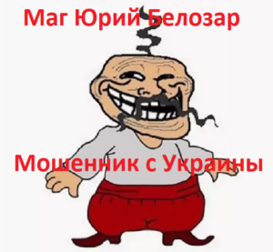 Шарлатан маг Юрий Белозар ([email protected]) — мошенник из Украины с шарлатанского форума planeta-magii.ru, подонок, который обманул меня на 38000 рублей, наобещав, что его шарлатанский приворот черное венчание сработает за 7 дней, но когда это время прошло, этот мошенник стал вымогать у меня еще 77000 рублей на какой-то приворот на кладбище во время полнолуния.