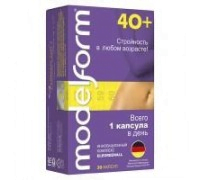 Модельформ 40+ — это биологическая активная добавка, котороя является дополнением к пище. В составе вы найдете много полезных веществ, среди которых экстракт померцана горького — он повышает общую физическую активность, также он не даст вам полнеть, псиллиум — это пищевые волокна, которые помогут регулировать работу кишечника и желудка, также вы почувствуете насыщение вашего желудка, экстракт мушмулы японской — в ней вы обнаружите много полезных витаминов, улучшает обмен веществ, также вы сможете найти в составе необычный экстракт момордики харанции — он содержит самые необходимые вещества для нашего тела — кальций, а ещё магний, железо, также этот экстракт улучшает пищеварение, также было замечено, что этот экстракт снижает уровень сахара в крови, это полезно для женщин у которых с этим проблемы, экстракт пуэрарии — поддерживает гормональный баланс. Показания — эта биологическая добавка сможет начать регулировать ваш аппетит, улучшит самочувствие и улучшить обмен веществ, поможет вам снизить массу тела, а ещё это укрепляющее средство для женщин в период менопаузы.