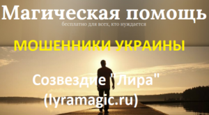 Шарлатанский сайт «Созвездие Лира» (lyramagic.ru) — мерзкие мошенники из Украины, на которых я нарвалась 3 недели назад по своей неосторожности, поверив в то, что они якобы оказывают бесплатную магическую помощь, как написано на сайте этих аферистов и в их рекламе в Гугл.