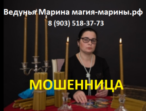 Ведунья Марина (магия-марины.рф, 8 (903) 518-37-73) — шарлатанка, мразь мошенница цыганка из Тамбова из шайки ублюдка мошенника Захария Аушева, которая врет, что находится в Москве и принимает там людей.