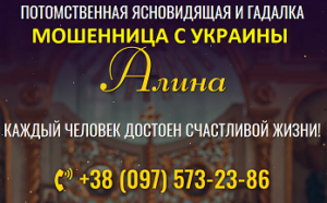 Ясновидящая и гадалка Алина (mag-alina.com, +38 (097) 573-23-86, [email protected]) — шарлатанка и мошенница с Украины, мразь обманывающая людей под несколькими кличками в интернете в составе преступной группировки мошенников и шантажистов из Украины.