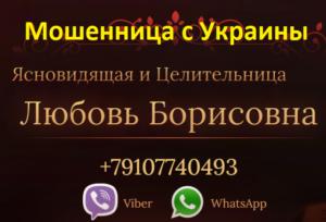 Ясновидящая Любовь Борисовна (lubov-predskazatelnica.in, 8 (910) 774-04-93, [email protected]) — шарлатанка и нелюдь, очень гадкая и бессовестная мошенница с Украины. Обманула на 45 т. р., вытянув из меня мои практически последние деньги, которые я ей переслала в течение декабря прошлого года за ее привороты и всякие их усиления, от которых вообще никакого толка.
